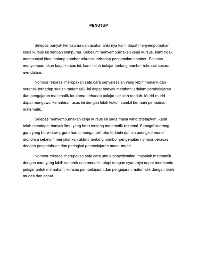 07012011 penutup kesimpulan dari berbagai topik yang sudah kita. Alhamdulillah syukur kepada Allah kerana dengan limpah kurniaNya saya berjaya menyiapkan kerja kursus ini pada masa yang ditetapkan. Jabatan perpaduan contoh rumusan.